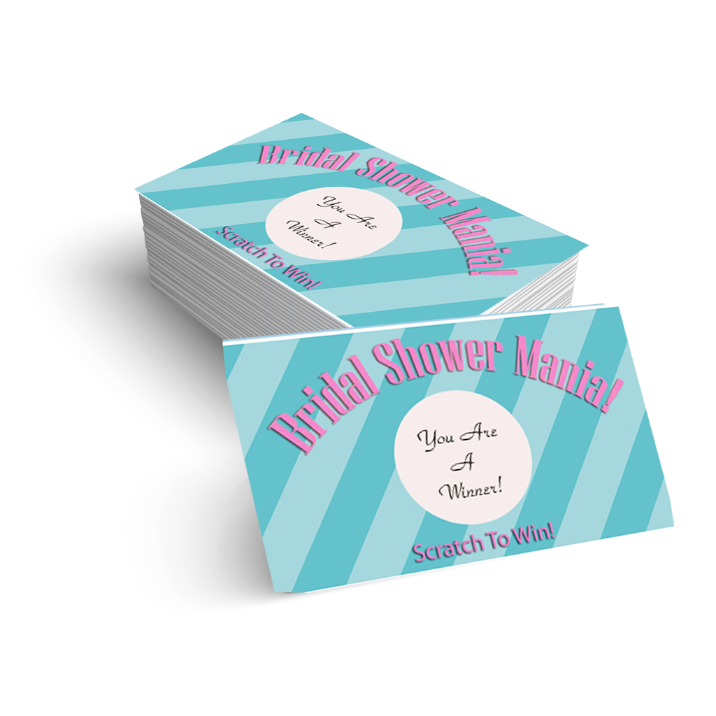 Bridal shower scratch off template uses 1.25" silver round scratch off stickers. Open file, print on card stock and apply your scratch off stickers. You will have 2 winners and 8 Sorry Not a Winner. You can print as many as copies as you need. We recommend using card stock, 110 lb found at office stores or your local stores. For your convenience we do offer card stock to print with as well.